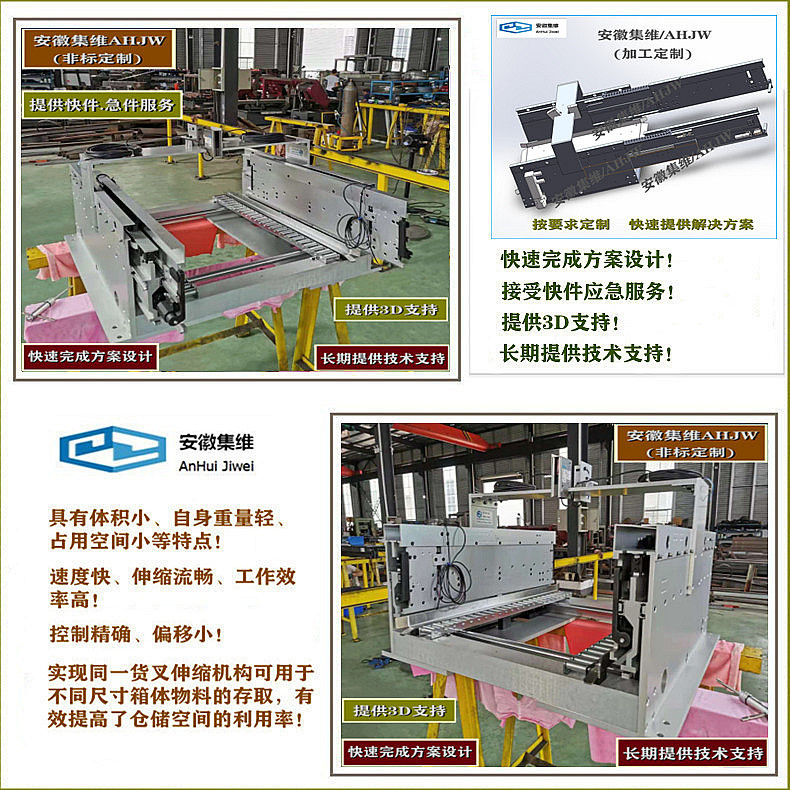 安徽集維智能裝備有限公司是一家集研發、設計、生產、銷售為一體的堆垛機伸縮貨叉生產制造企業,擁有多位資歷深厚的工程設計團隊和經驗豐富的技術師,全套的機加工設備,完全自主設計、自主生產,具備年生產1200臺套伸縮貨叉的制造能力,具有快速完成方案的設計能力,以及短期交付的生產加工能力,具備提前交付或快速交付的應急能力!